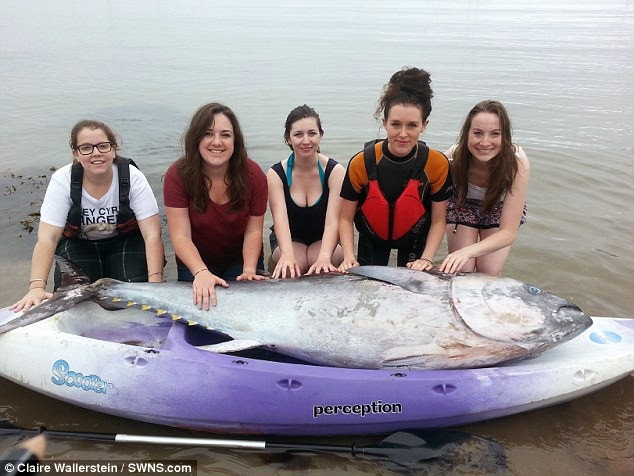 Lima gadis berjaya mendarat seekor ikan raksasa seberat 300kg ikan ini adalah jenis tuna sirip biru ini berharga 1.9 juta mengikut harga pasaran, mereka telah dibenarkan untuk menjual ikan tersebut.